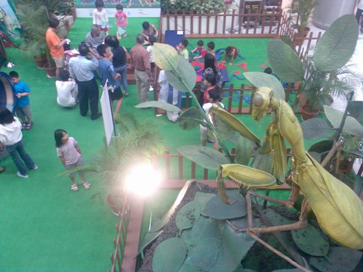That’s why I went to the second floor and took photos of the entire roadshow from top-view. (Left to Right) Activity Area. Gigantic Hairy Spider and Huge Praying Mantis.