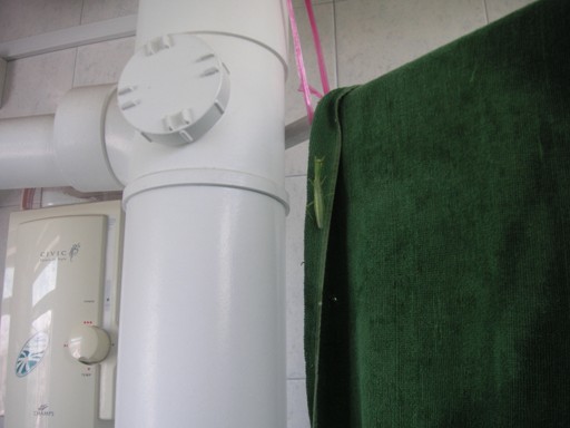 When we got home, we found a peeping Tom in our bathroom. Can’t see him? Ya, that is why I said he was attempting to peep us bathing. He was camouflaging! Let’s take a closer look.